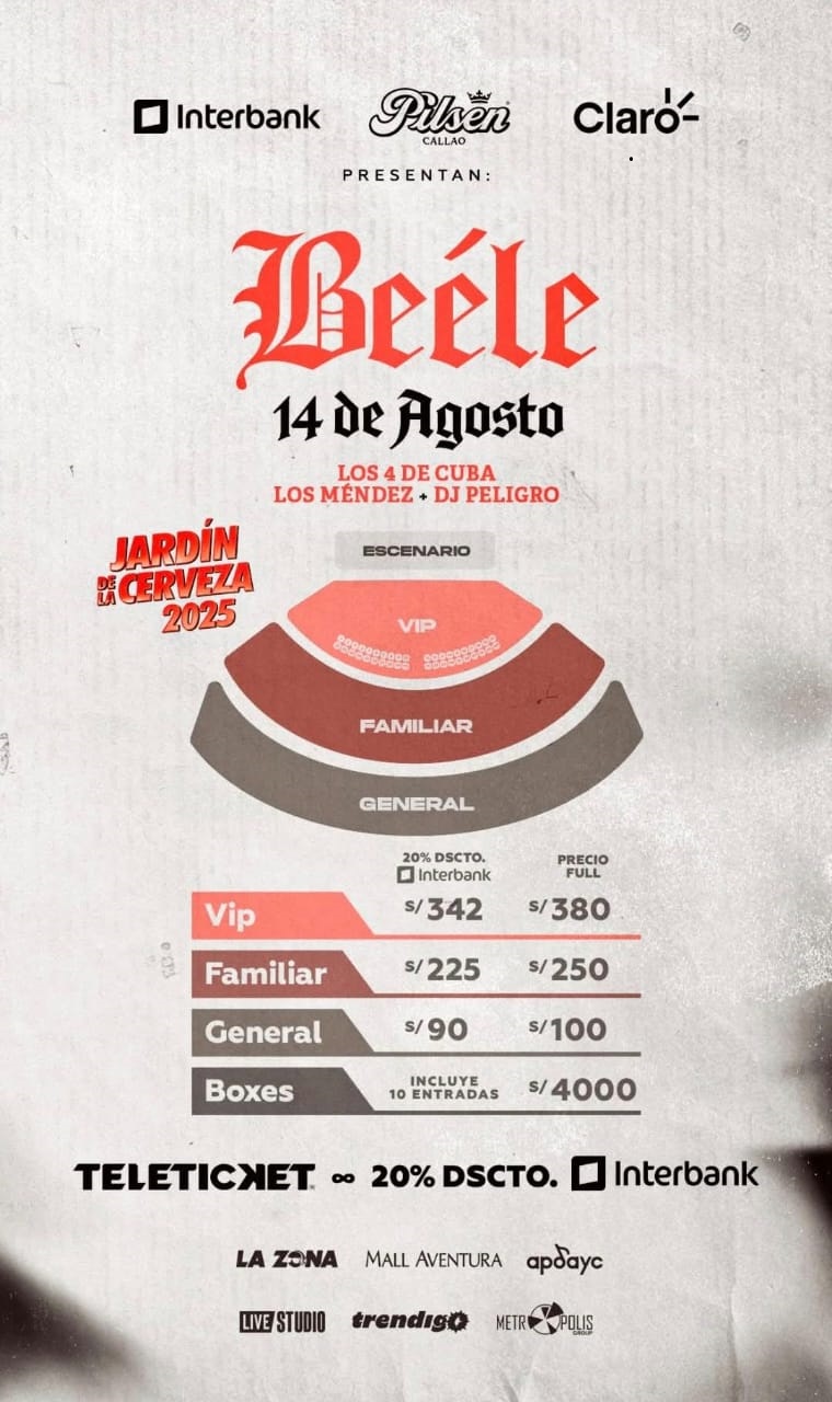 20% DSCTO en PRE VENTA INTERBANK, este VIERNES 04 Y SABADO 05 DE JULIO en #TELETICKET, desde el mediodía.